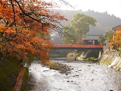 宮川に架かる赤い橋で、高山のシンボルのひとつ。高山が城下町として栄えた頃に架け…