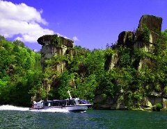 木曽川の清流をせき止めてできた人造湖・恵那峡を周遊する観光遊覧船。春は桜、初夏…