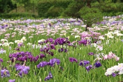 広さ7000平方mの日本有数の規模を誇るしょうぶ苑をはじめ、園内中央の斜面一帯…
