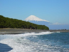 富士山頂から南西約45kmに位置する三保半島の、主に東側に広がる景勝地。沿岸の…